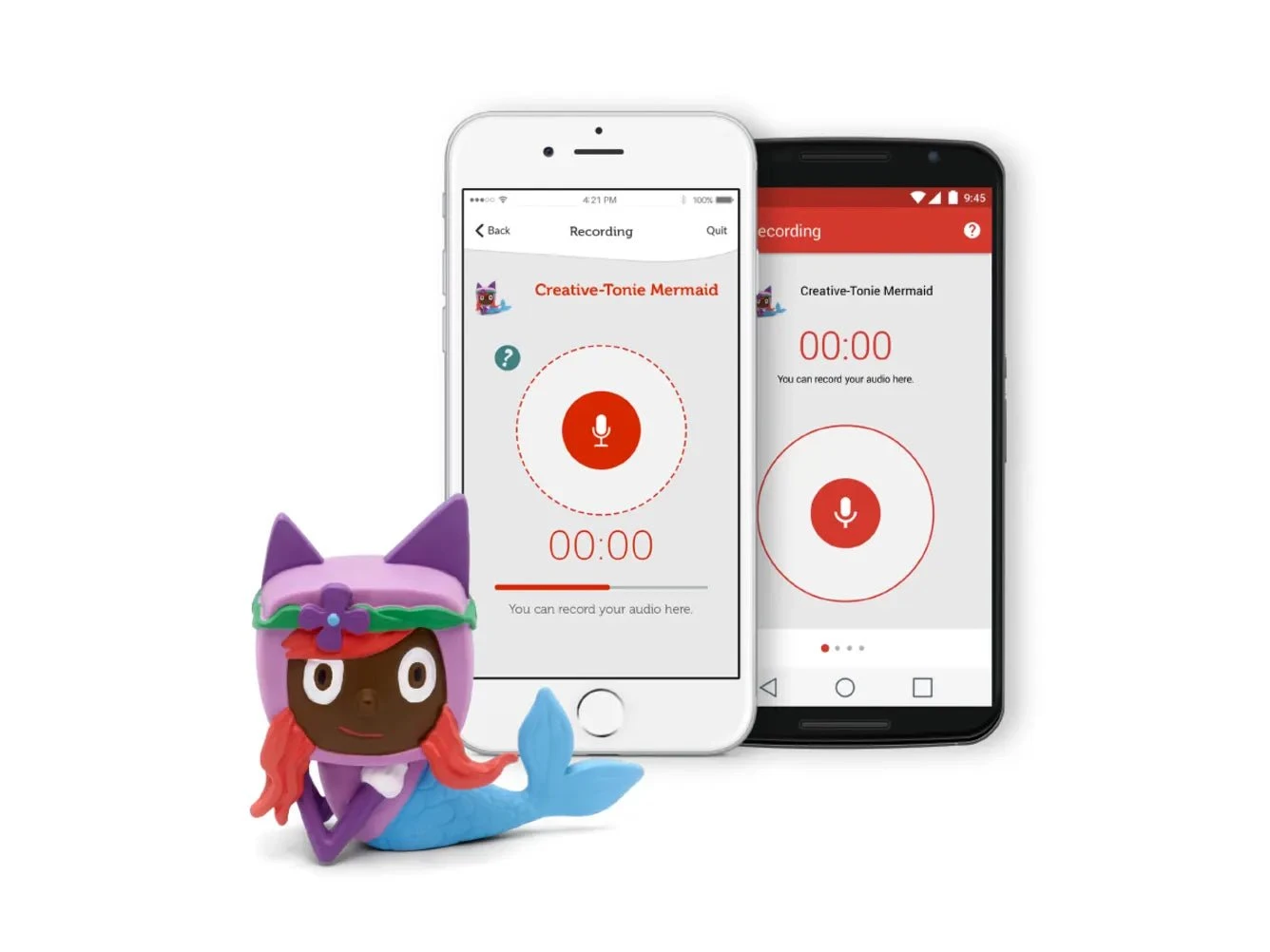 Mermaid Creative-Tonie. Lovely little Mermaid, you could record all songs or stories relating to the sea on this creative tonie. It has space to fill it with 90 minutes of whatever you like. Just upload audio using your computer, tablet or smartphone.