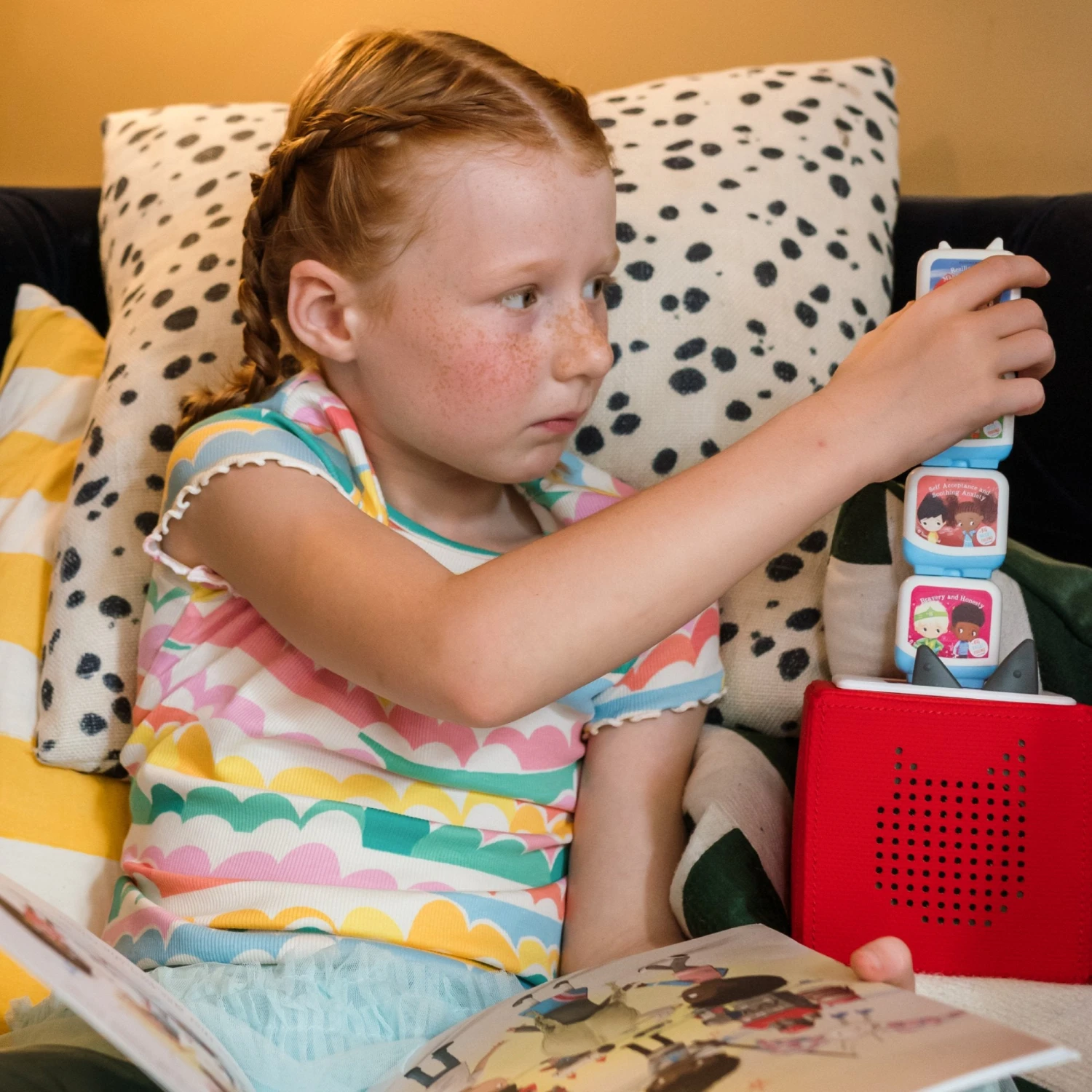 Tom Percival’s best-selling Big Bright Feelings books have been helping kids tackle biiiiiig feelings for years. This Clever Pocket Tonie set includes re-tellings of some of his most popular tales like Ruby’s Worry, Meesha Makes Friends, Tilda tries again and Billy’s Bravery. Each Tonie is themed around self-acceptance and soothing anxiety, friendship and taming tempers, resilience and managing jealousy and bravery and honesty. As