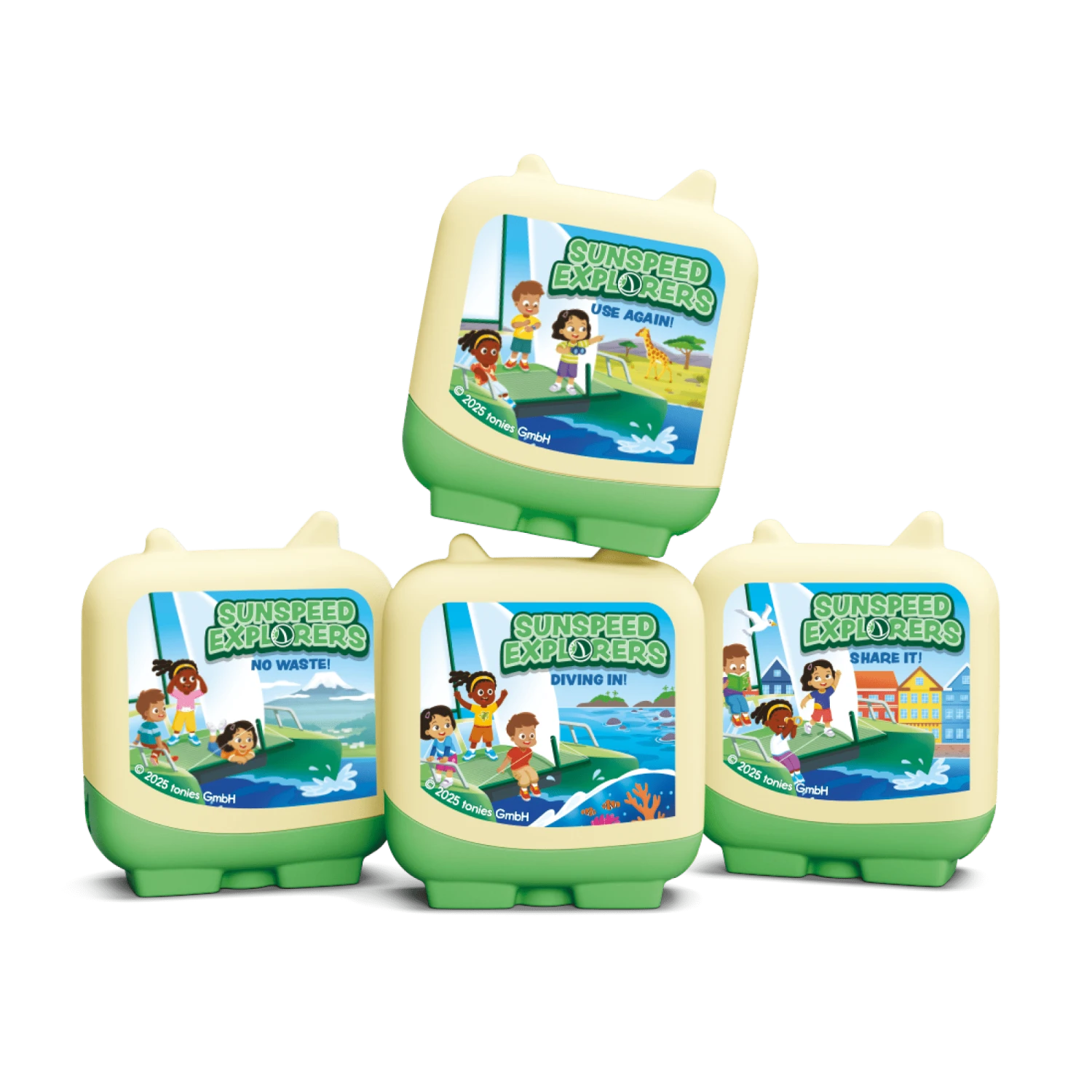 Sunspeed Explorers is a thrilling, educational series that teaches sustainability and climate change through the “RRR” approach: Reduce, Reuse, Recycle. The story follows three young, diverse and eco-conscious friends, Raj, Aya and Mia, as they embark on exciting journeys to explore and tackle various environmental challenges around the globe. Your little sustainability warriors need only pop this Clever Tonie on their Toniebox to find themselves immersed in coral reefs, zero-waste towns and Copenhagen’s Repair Café.